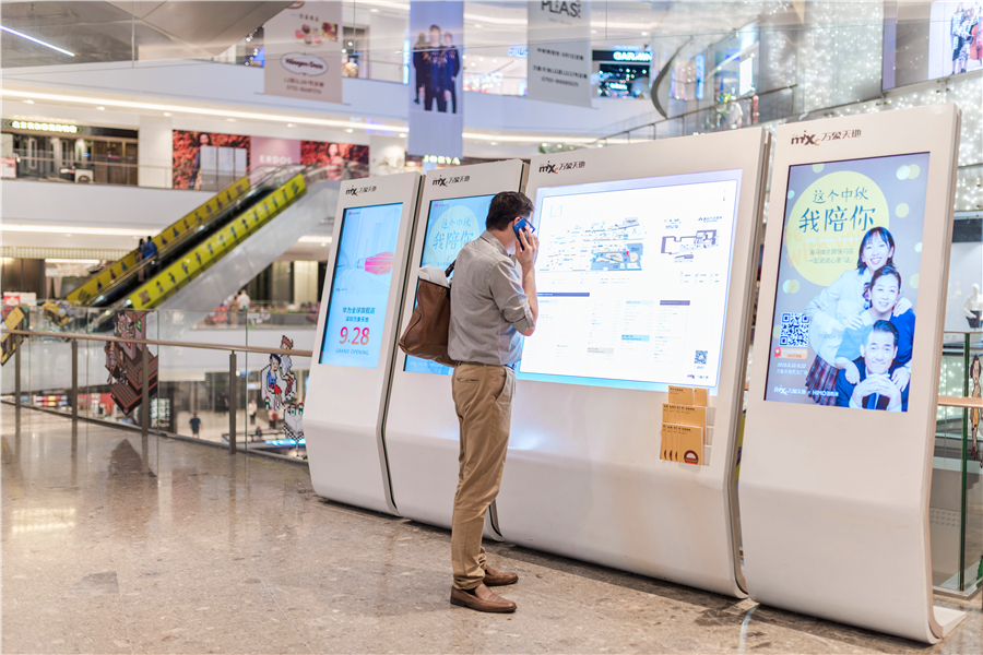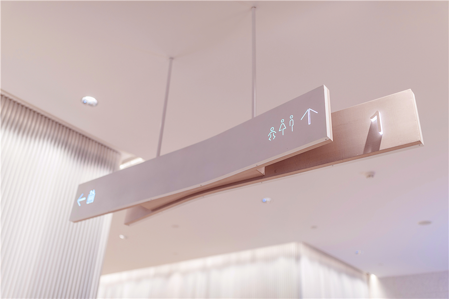 萬(wàn)象天地導(dǎo)視系統(tǒng)整體簡(jiǎn)約現(xiàn)代、且充滿設(shè)計(jì)感,在每一層設(shè)立服務(wù)臺(tái),提供商場(chǎng)指引、指示牌、導(dǎo)視牌、樓層指南。全方位導(dǎo)視牌設(shè)置,且均布置在垂直電梯附近,美觀性與導(dǎo)視實(shí)用性相結(jié)合。