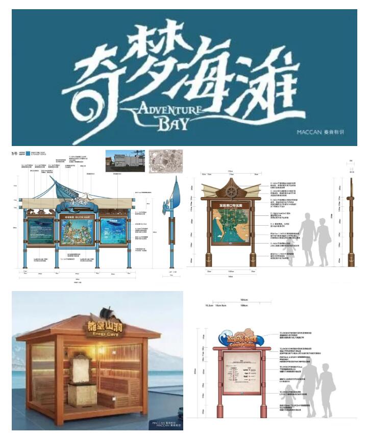 奇夢海灘標(biāo)識導(dǎo)視系統(tǒng)以“發(fā)現(xiàn)港口”“迷失海灣”“探險奇洞”“異域海島”等主題區(qū)構(gòu)建充滿神秘魔力的奇夢海灘,多場景多層次的水上娛樂給游客帶來無與倫比的想象和探索體驗(yàn)。