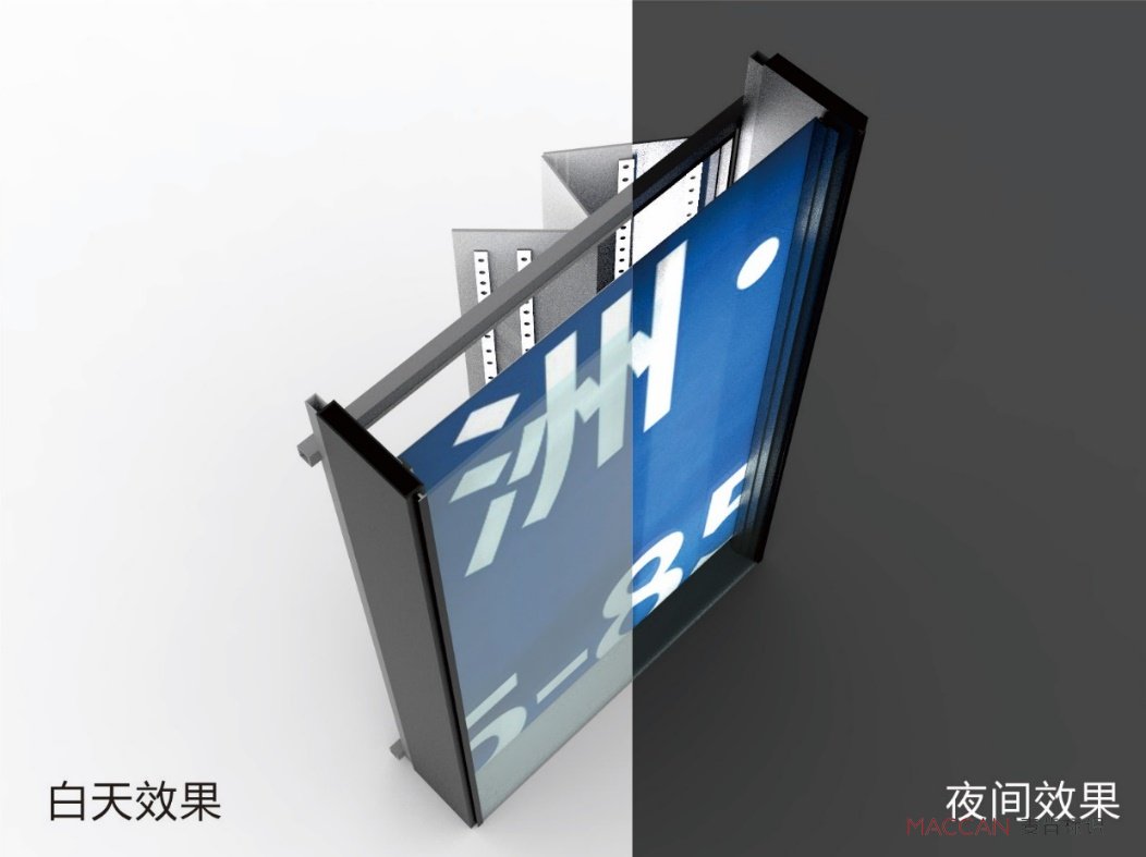 1.改變傳統(tǒng)燈箱安裝方式,減少?gòu)V告燈箱受到外部環(huán)境影響弊端,將燈箱整體內(nèi)置于幕墻玻璃內(nèi)部;