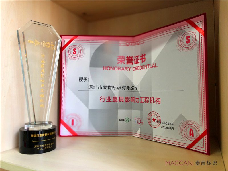 為樹立標(biāo)識(shí)行業(yè)優(yōu)秀品牌榜樣,深圳市標(biāo)識(shí)行業(yè)協(xié)會(huì)對(duì)行業(yè)內(nèi)有杰出貢獻(xiàn),為行業(yè)發(fā)展樹立新標(biāo)桿的企業(yè)頒發(fā)獎(jiǎng)項(xiàng),并舉行了隆重的頒獎(jiǎng)儀式。深圳市麥肯標(biāo)識(shí)有限公司總經(jīng)理張銀遠(yuǎn)先生榮獲“行業(yè)卓越貢獻(xiàn)”獎(jiǎng)及“行業(yè)最具影響力工程機(jī)構(gòu)”獎(jiǎng)。