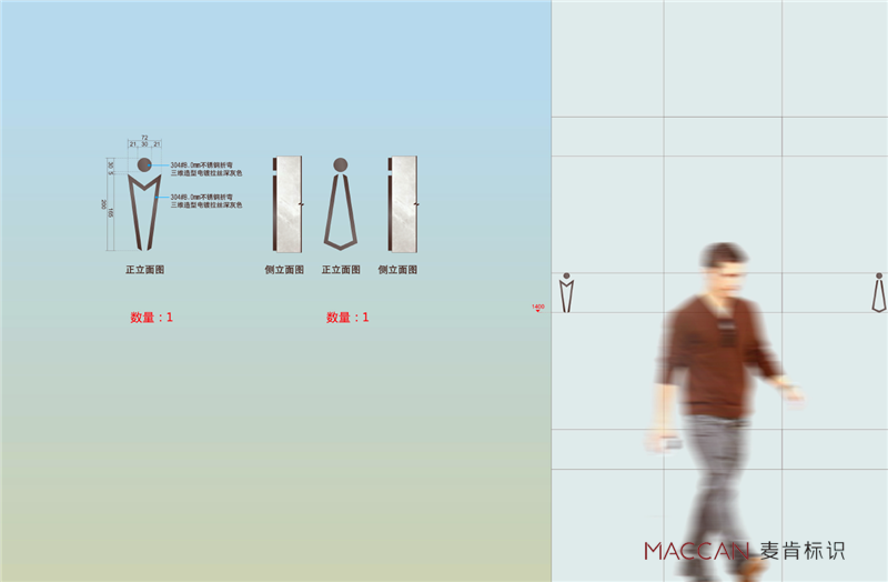標識系統(tǒng)從項目特殊造型著手,通過現(xiàn)代簡潔的處理手法,建筑的“門”進行變化組合,通過交錯穿插的形式,增加標識的造型豐富,強化標識與建筑的關系。