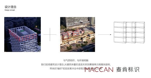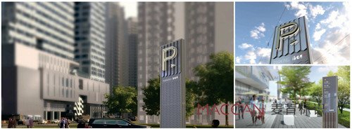 設(shè)計師通過簡練的線條和充滿創(chuàng)意的結(jié)構(gòu)創(chuàng)造,將建筑及景觀、空間的語言轉(zhuǎn)化到標識系統(tǒng);用提煉的元素重疊旋轉(zhuǎn)及錯位關(guān)系反映在標識牌上與氣質(zhì)相符, 與環(huán)境相融;麥肯延續(xù)海境界建筑設(shè)計理念,從建筑體量的退進關(guān)系到幕墻單元格模塊旋轉(zhuǎn),帶來的"編織"視覺效果沖擊中獲取靈感,提煉核心元素,使其環(huán)境標識牌與建筑遙相呼應(yīng),賦予來訪者一個關(guān)于頂級人居生活場所的絕佳審美期待 。