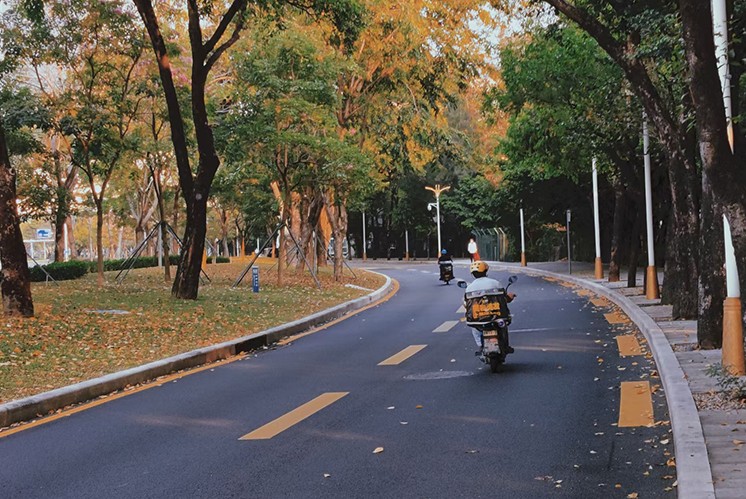 陽光大片大片地落在馬路上,