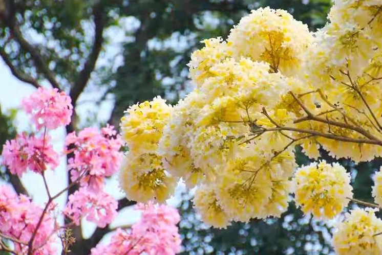 市民中心的黃花風(fēng)鈴木一簇簇地掛滿枝頭。