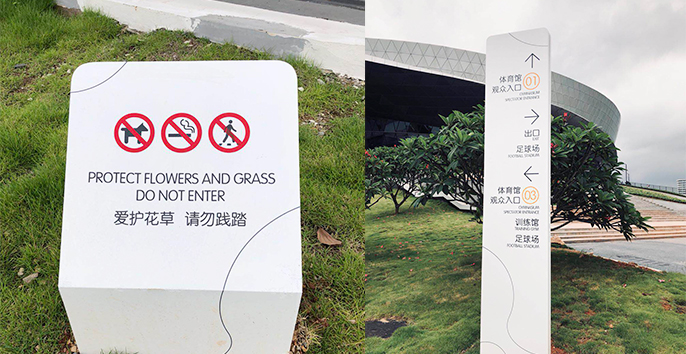 為了方便用戶定位,麥肯團隊受邀為其進行導(dǎo)視系統(tǒng)設(shè)計。整套導(dǎo)視系統(tǒng)采用簡潔的線條、黑白分明的色調(diào)和簡潔大方的設(shè)計,使肇慶新區(qū)體育中心整套導(dǎo)視系統(tǒng)呈現(xiàn)出美觀、實用、簡潔、大方、明朗的立體清晰指引。