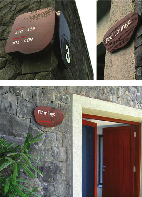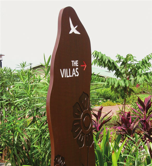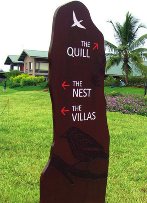 園林景觀是一個(gè)戶外開(kāi)放型的公共空間,從基本特征來(lái)看,園林占地面積大、樹(shù)木的遮蔽性大、景點(diǎn)比較分散、環(huán)境的可識(shí)別性相對(duì)弱,游客迫切地需要一個(gè)導(dǎo)向明確而簡(jiǎn)捷的導(dǎo)視系統(tǒng)。園林景觀的導(dǎo)視系統(tǒng)主要有園林平面圖、場(chǎng)所方位指示和場(chǎng)所標(biāo)識(shí)、科普文化標(biāo)識(shí)、警示標(biāo)識(shí)等。有的公園還配備了導(dǎo)游手冊(cè),主要是將道路、景觀、場(chǎng)所一一標(biāo)注出來(lái),只要你一進(jìn)入公園就可以將公園的結(jié)構(gòu)看得一清二楚。在設(shè)計(jì)時(shí)應(yīng)考慮既不能破壞園林整體氣氛,又可以達(dá)到引導(dǎo)、吸引游客的目的。由于范圍廣泛,園林的導(dǎo)視密度相對(duì)降低,體量感相對(duì)增大,而且導(dǎo)視系統(tǒng)設(shè)計(jì)風(fēng)格、色彩統(tǒng)一性,以及形式感都可以相對(duì)自由、新穎,給人深刻印象。