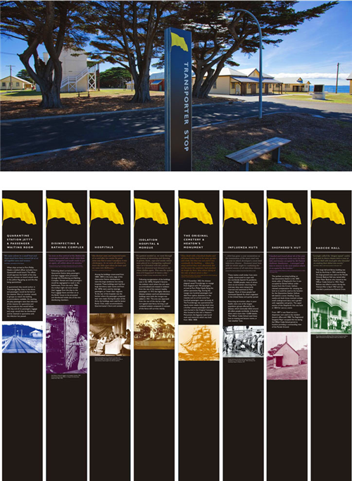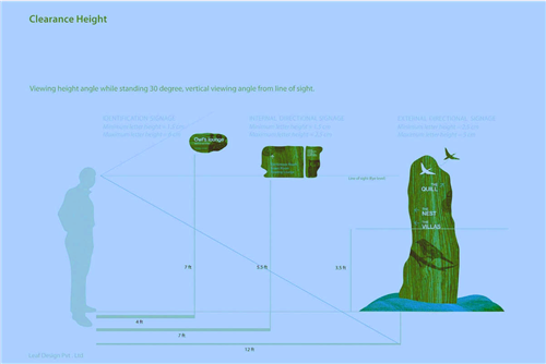 公園的導(dǎo)視系統(tǒng)采用不同的動(dòng)植物來(lái)代表不同區(qū)域的不同功能,例如,小鳥(niǎo)和海面等自然的形象。
