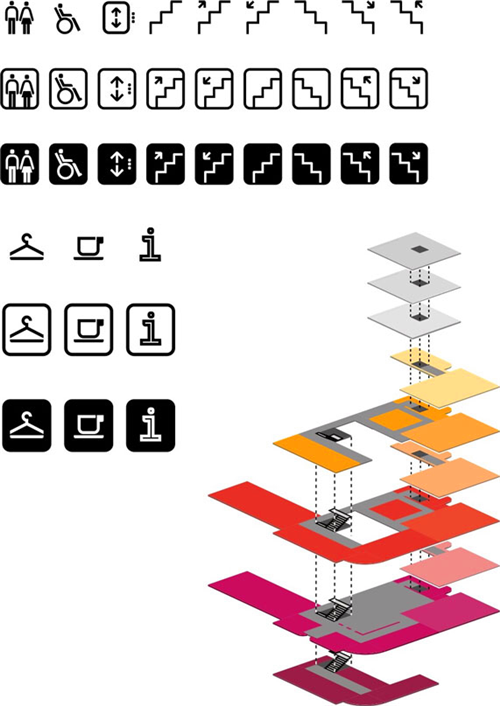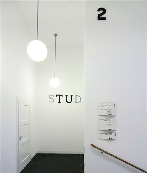 導(dǎo)視系統(tǒng)的設(shè)計(jì)在一定程度上展現(xiàn)了大樓的歷史底蘊(yùn),主要還是對(duì)以往的導(dǎo)視系統(tǒng)招牌做一個(gè)翻新和變革。字體的設(shè)計(jì)仿佛將人們帶回了那個(gè)熟悉的20世紀(jì)30年代。通過(guò)融合了antiqua和grotesque的字體設(shè)計(jì)之后,字體讓人感受到現(xiàn)代氣息的同時(shí),仍透露出歷史的古老閱讀氛圍。