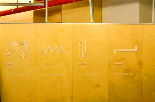 韓國首爾“無重力地帶G谷”是為G谷(首爾數(shù)碼產(chǎn)業(yè)園區(qū))和附近的就業(yè)青年,以及正在準(zhǔn)備就業(yè)·創(chuàng)業(yè)的青年而設(shè)立的創(chuàng)意館。著名標(biāo)識(shí)設(shè)計(jì)公司Everyday Practice受托為該創(chuàng)意館完成標(biāo)識(shí)設(shè)計(jì)。