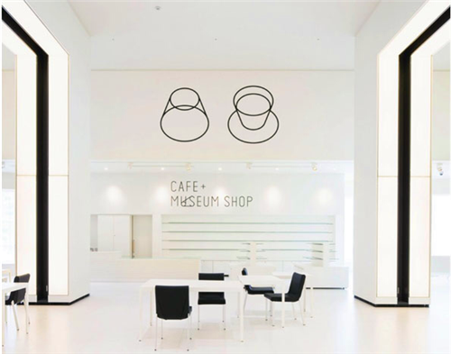 美術(shù)館標(biāo)識的設(shè)計(jì)靈感來源于日本著名的富士山,將兩個圓形連接,表達(dá)了一種城市與世界的包含關(guān)系,而人們可以從不同的角度來觀看這個標(biāo)識,無論從上邊還是下邊,整個標(biāo)識就像一個山或茶杯,甚至是你想象出來的任何其他物件。