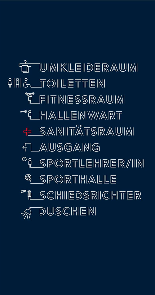 開姆尼斯工業(yè)學校體育館需要制作一套全新的導視系統(tǒng)來應(yīng)付日常的教育和管理需要,同時,為了日后能夠向公眾開放,導視系統(tǒng)的設(shè)計迫在眉睫。