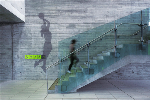 導視系統(tǒng)中最出眾的設(shè)計就是對字母的改造,將字母做一個設(shè)計的斷層,讓這個空間帶有運動的干練、直爽感,線條表達讓字體與圖案相結(jié)合,讓人感覺到運動的快樂。