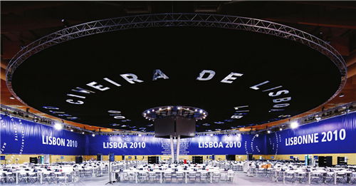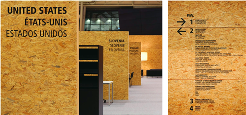 P-06 ATELIER設(shè)計工作室與建筑師RISCO等合作。整個會場的面積有35000平方米,可以憑借出色的導視系統(tǒng)讓上千成萬的與會人員實現(xiàn)自由活動的目的。鮮艷色彩的選擇讓整個空間給人一種寬敞、簡捷的秩序感。在人行過道的地板上和主要通道中,白色的字體配以黑色的地板。在會議中心的人行道地板上同樣將大型圖案作為背景,天花板上那螺旋上升的圓形板是設(shè)計的最大亮點。