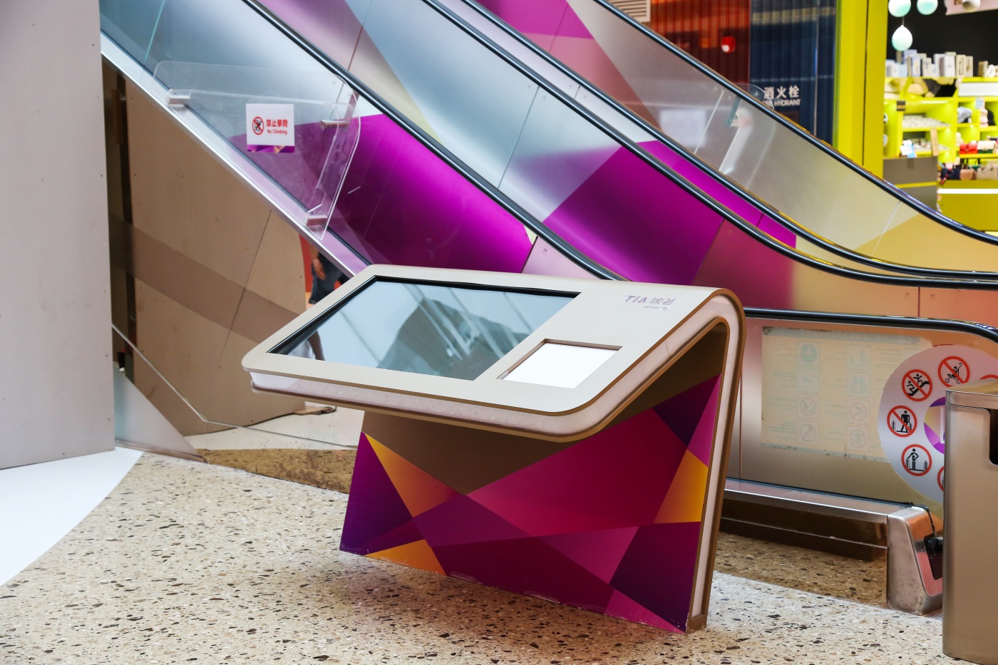 為了保證商場布局清晰醒目,使用港鐵TIA頌薈品牌元素設(shè)計(jì)了LED觸摸屏指引,既方便了顧客查詢路線,同時也增強(qiáng)了大眾對品牌的認(rèn)知。