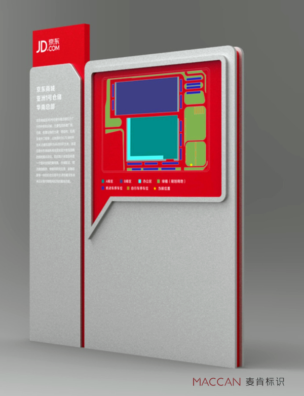 公共園區(qū)指示系統(tǒng)主要是滿足來訪者對服務(wù)設(shè)施的位置和方向的需求,如停車場、廁所、通訊、餐飲服務(wù)中心等。公共場所指示和識別系統(tǒng)通過美觀、清晰的標(biāo)識為新來者指明方向,不僅為游客提供了方便,而且無形中美化了園區(qū)環(huán)境,貼合品牌展示形象。倉儲物流園區(qū)的標(biāo)識設(shè)計(jì)需根據(jù)園區(qū)的建筑環(huán)境在形狀、材料和色彩上進(jìn)行了匹配和協(xié)調(diào)。