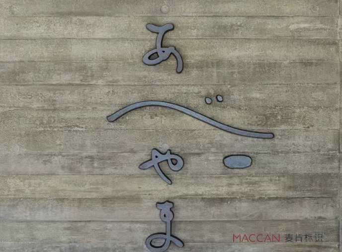 △養(yǎng)老院入口,以具有分量感的導(dǎo)視材質(zhì)凸顯空間的沉靜氛圍