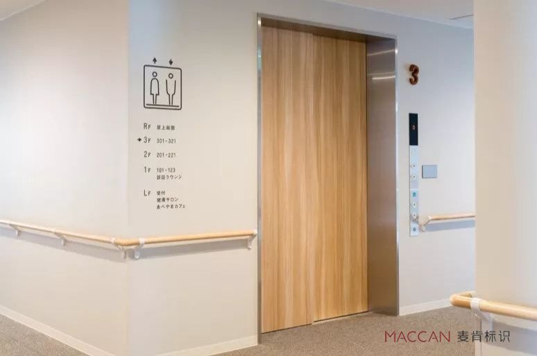 細(xì)看每一個(gè)房間的導(dǎo)視門牌,原來它們還特別作了向外傾斜的設(shè)計(jì),即使是坐在輪椅上的老人也能很清楚地識(shí)別。日本設(shè)計(jì)在細(xì)節(jié)上這么用心,還是挺讓人服氣的。