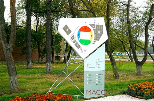大型體育場(chǎng)作為人流量、車(chē)流量極大的大型公共場(chǎng)所,對(duì)優(yōu)秀標(biāo)識(shí)導(dǎo)向系統(tǒng)的需求極為迫切。沈陽(yáng)奧株匹克體育中心標(biāo)識(shí)系統(tǒng)以展現(xiàn)簡(jiǎn)潔高效的引導(dǎo)信息為基礎(chǔ).以?shī)W林匹克精神和沈陽(yáng)奧體中心建筑風(fēng)格為標(biāo)識(shí)設(shè)計(jì)理念源泉,結(jié)合體育場(chǎng)建筑布局,突破常規(guī)標(biāo)識(shí)設(shè)計(jì)套路,實(shí)現(xiàn)了標(biāo)識(shí)融入奧體中心景觀和對(duì)人流、車(chē)流的高效引導(dǎo)。
