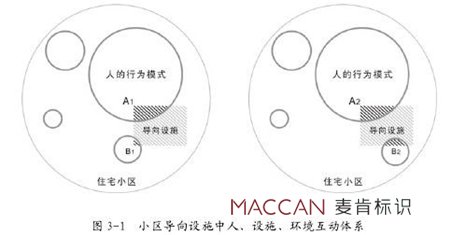 居住空間本應(yīng)成為人生活的物化反應(yīng),要根據(jù)人的行為而不是汽車交通的需要,限定居住空間的規(guī)模。許多人都在考慮如何通過對空間環(huán)境的設(shè)計(jì),誘導(dǎo)或改變某些行為,使人類對物質(zhì)環(huán)境的反應(yīng)更具有一種持續(xù)的關(guān)系。即使個(gè)體間的不同,文化上的差別會帶來多種變化,但是有些研究人員仍然堅(jiān)持空間環(huán)境的標(biāo)識設(shè)計(jì)對人們行為的影響是巨大的。然而,環(huán)境對人行為的影響并非直接的、簡單的因果關(guān)系,而是一種多因素、綜合的、系統(tǒng)的相互關(guān)系。