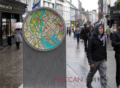 其次,在信息傳達在設(shè)計上,多功能性指路牌可以通過與其他設(shè)施的趣味性結(jié)合形象的圖像、抽象的文字概念等達到形與色的感性印象及心理感受,傳達特定的信息。