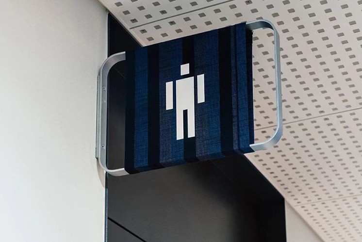 再例如:日本島原市政廳,市政廳是象征城市文化的地方,在標識設(shè)計上優(yōu)先確定了使用傳統(tǒng)工藝的導(dǎo)原木棉作為主題,以藍色染線為底,以條紋圖案為特征的樸素木棉,此外,應(yīng)對將來可能的導(dǎo)視信息的變更,標識設(shè)計成了可以取下布料結(jié)構(gòu),地域傳統(tǒng)工藝的棉質(zhì)和鐵框的簡單設(shè)計,直觀給人樸素和新鮮感,讓人感受到島原市的歷史和風(fēng)土。
