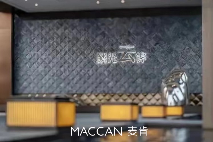 麥肯設計團隊經過上百次的推敲,秉承“東方禮序,開石鎏金”的理念,營造“鱗衣”照壁與華燈引行的空間深邃,選取云鏡臺的建筑設計概念及元素,融合鏡與水、帆與幾何體為一體,結合優(yōu)雅的弧度,簡化建筑造型的菱角線條,從“金潤石開”到“琢石、金鱗、鑄銅、影廊、浩瀚水面和金蓮”, 以現代中式的設計手法演繹奢美東方,甄筑3萬方皇家園林。