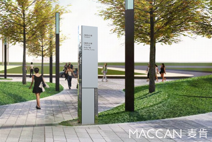 眾所周知,辦公樓標(biāo)識系統(tǒng)按照功能可以分為幾個(gè)類別,第一個(gè)就是戶外標(biāo)識的形象立牌,這與品牌內(nèi)涵vi緊密相關(guān),辦公樓的形象標(biāo)識牌主要用于展示單位或者企業(yè)形象。簡潔明快、材料時(shí)尚新穎可以直接展示企業(yè)的實(shí)力,同樣也是商務(wù)的初次交流印象感知來源。第二個(gè)則是建筑分布總平面圖,輕松定位所處位置,第三則是交通標(biāo)識牌,規(guī)范樓宇之間行人、車的交通等,還有一些零散分類的標(biāo)識牌,統(tǒng)一體現(xiàn)出品牌性,與周邊環(huán)境融合、不突兀、仍是一個(gè)重要的設(shè)計(jì)話題。那么,在辦公樓標(biāo)識設(shè)計(jì)中,如何將品牌內(nèi)涵與環(huán)境完美融合呢?