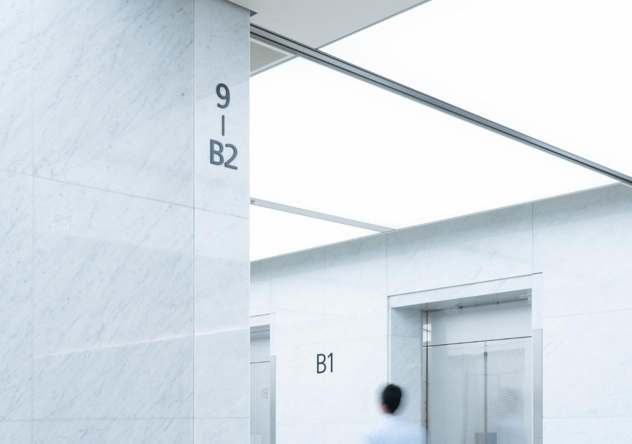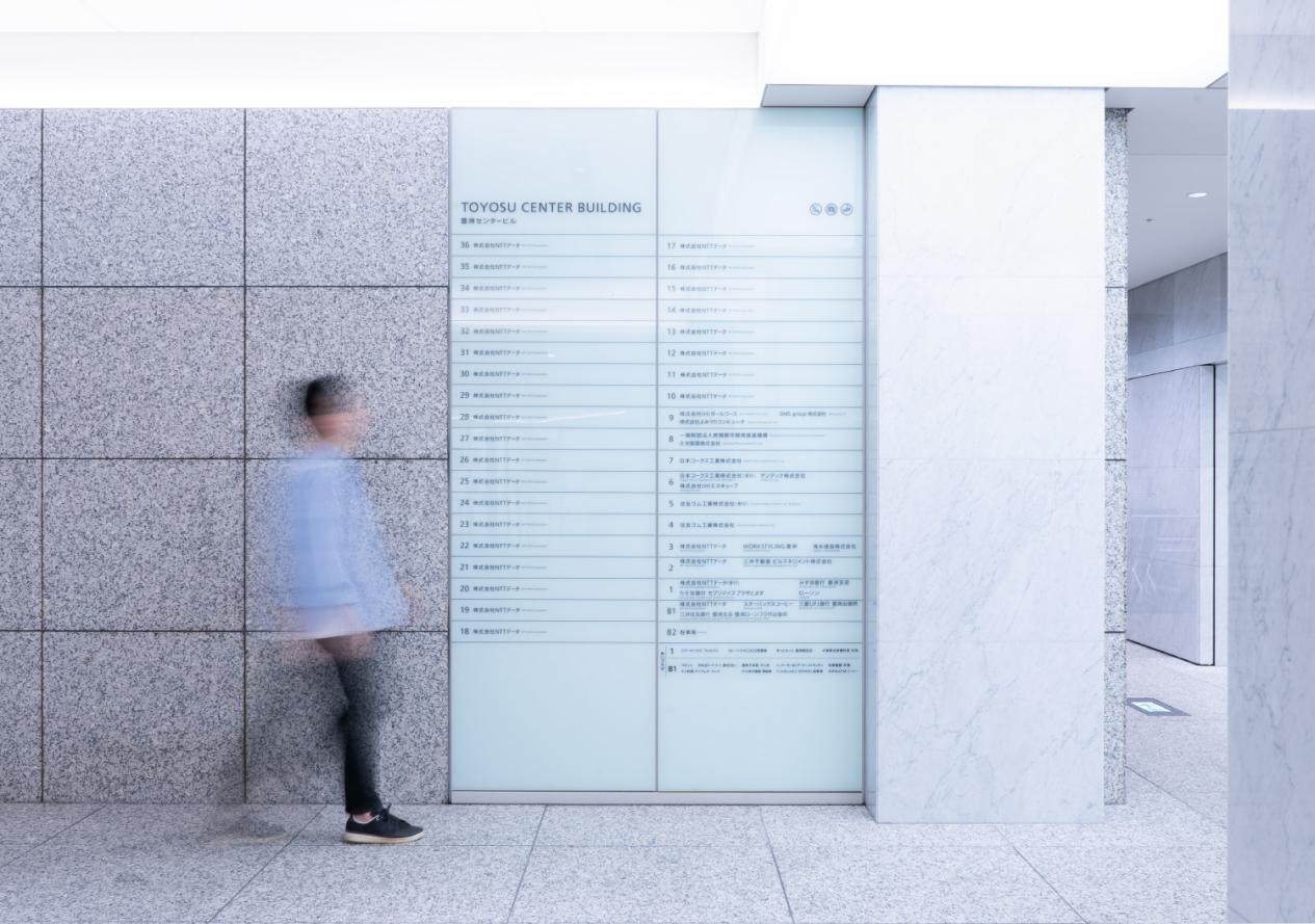 豐洲中心大樓位于日本東京都江東區(qū),地處海灣區(qū)域,平面圖接近正方形,擁有完善的辦公和配套設(shè)施,基于豐洲中心大樓的地理位置,設(shè)計(jì)采用藍(lán)色、深藍(lán)色對區(qū)域進(jìn)行劃分,與大海元素呼應(yīng)。標(biāo)牌采用玻璃材質(zhì),直接與墻面相融合,簡約的排版搭配無襯線字體,整套導(dǎo)視系統(tǒng)視覺上具有清透感。