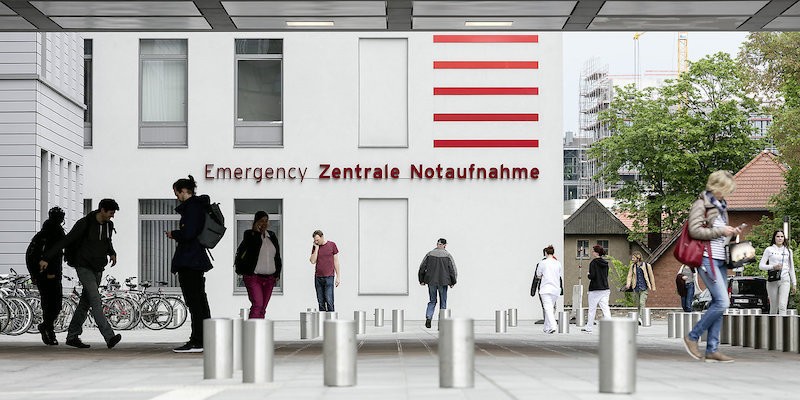 基于翻新后的Charité醫(yī)院,moniteurs公司在應(yīng)急服務(wù)大樓外立面設(shè)計(jì)了紅色的線條引導(dǎo)元素,與白色外立面形成強(qiáng)烈的視覺沖擊力,有助于急診快速定位。內(nèi)部巨大的icon便于進(jìn)行訪問,樓層采用色彩編碼,整套導(dǎo)視系統(tǒng)信息完善,具有良好的信息傳達(dá)度。