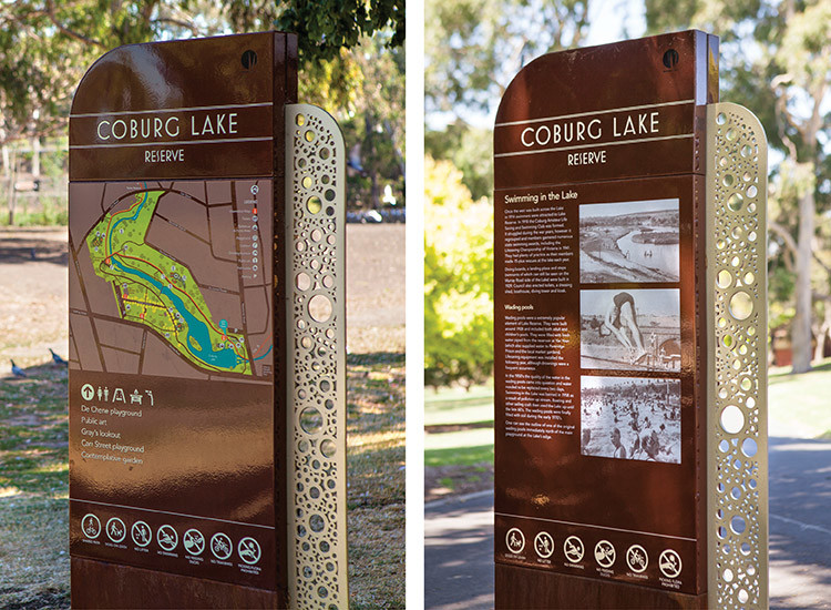 科堡湖位于墨爾本北郊,一百多年來,科堡湖一直是莫蘭社區(qū)生活的中心,擁有許多珍貴的地標。Aspect工作室受邀為其進行導視系統(tǒng)設計。