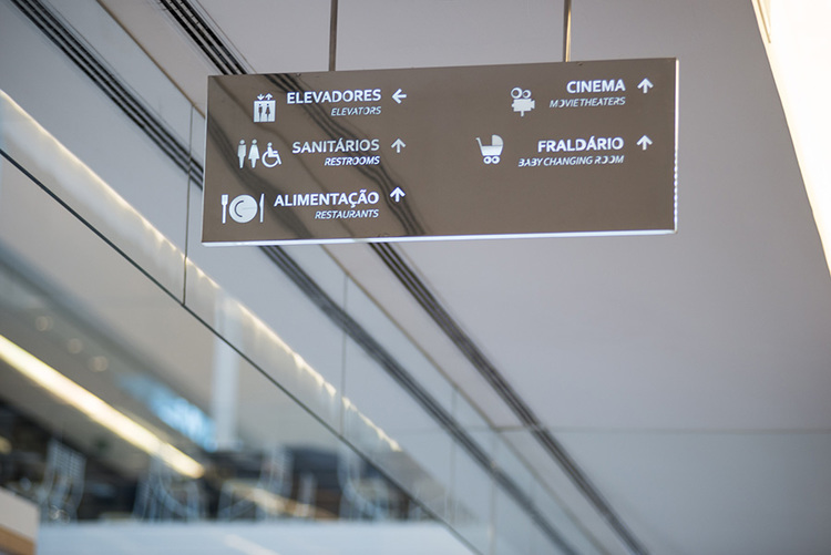 JK Iguatemi購物中心位于巴西圣保羅,是當(dāng)?shù)貫閿?shù)不多的擁有一線品牌的商場,旨在提供優(yōu)質(zhì)的購物體驗,2buy公司受邀為其進(jìn)行導(dǎo)視系統(tǒng)設(shè)計?;谏虉龅慕渫庥^和內(nèi)飾, 2buy公司采用鏡面鋼和燈箱材質(zhì),燈箱兩面均使用帶有鏤刻信息的鏡面鋼貼面,信息清晰可見,便于夜間尋路。標(biāo)牌外觀與空間相得益彰,打造了清爽、現(xiàn)代的購物環(huán)境。