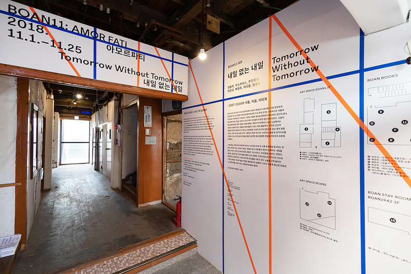 藝術(shù)空間BOAN11周年紀(jì)念展記錄了1942年在首爾建造的“BOAN酒店”遺跡以及分享創(chuàng)意講座。 Everyday practice受邀為其進(jìn)行導(dǎo)視系統(tǒng)設(shè)計(jì)。