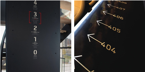 與公共空間導(dǎo)視系統(tǒng)不同的是,商業(yè)環(huán)境導(dǎo)視系統(tǒng)的利用空間都比較開闊,例如,商場(chǎng)、酒店與辦公寫字樓等。商業(yè)環(huán)境導(dǎo)視系統(tǒng)的設(shè)置更多安排在關(guān)鍵的指示區(qū)域,在大廳的主入口處、主要入口和通道、建筑物主體的入口正上方、室外扶梯客梯、中庭的邊緣位置、櫥窗與玻璃門、樓層的各個(gè)主次出入口等。