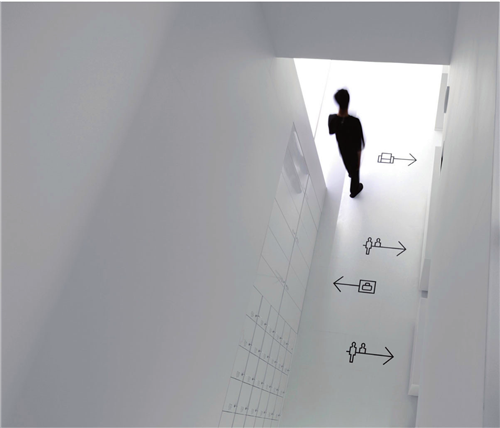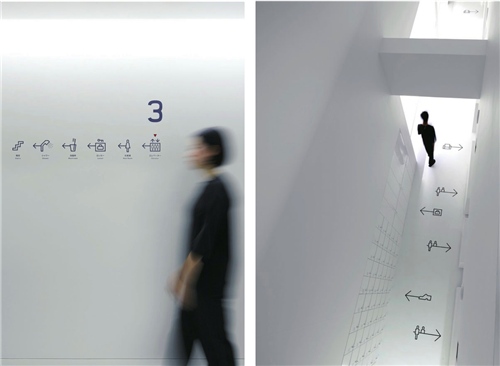 平面設(shè)計(jì)師、室內(nèi)設(shè)計(jì)師和產(chǎn)品設(shè)計(jì)師在設(shè)計(jì)前期經(jīng)過(guò)不斷地討論和研究,通過(guò)分享不同設(shè)計(jì)領(lǐng)域的設(shè)計(jì)理念,最終讓想法變成現(xiàn)實(shí)。就導(dǎo)視系統(tǒng)而言,墻體上和地板上的圖示符號(hào)清晰、明了地指明不同設(shè)施的位置,對(duì)于不同語(yǔ)言的外國(guó)游客同樣適用。