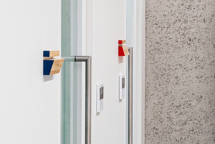洗手間的標(biāo)識系統(tǒng),堪稱功能與美學(xué)的典范。設(shè)計師摒棄了傳統(tǒng)的單一圖形或文字標(biāo)識,而是將顏色、文字、形狀三者巧妙結(jié)合。標(biāo)識的側(cè)面分別以藍色和紅色代表男女,而正面則清晰標(biāo)注具體文字,使得信息傳達既直觀又富有設(shè)計感。這種多維度的表達方式不僅提高了辨識度,更在細節(jié)處展現(xiàn)了設(shè)計的人性化思考。