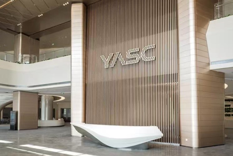 長(zhǎng)飛半導(dǎo)體園區(qū)的每一處空間都蘊(yùn)含著獨(dú)特的文化與創(chuàng)意,而文化墻更是這片科技圣地的靈魂之窗。采用高級(jí)地毯材料打造的文化墻,以藍(lán)色與綠色為主色調(diào),巧妙地將科技的冷峻與自然的生機(jī)完美融合,讓訪客在感受園區(qū)獨(dú)特的藝術(shù)魅力的同時(shí),也能領(lǐng)略到創(chuàng)新精神的內(nèi)涵。文化墻以深邃的藍(lán)色為底色,仿佛無(wú)垠的宇宙星空,象征著科技的無(wú)限可能與探索的勇氣。其間的翠綠色,則如同生機(jī)盎然的綠洲,代表著創(chuàng)新的活力與希望。兩者相互交織,是對(duì)生態(tài)與和諧的深刻理解。選用的織棉材料,質(zhì)地柔軟而富有彈性,觸感溫潤(rùn)如玉。在視覺上營(yíng)造出一種柔和而高級(jí)的氛圍,紋理細(xì)膩,仿佛細(xì)膩的織錦,彰顯了園區(qū)文化的深度與溫度。