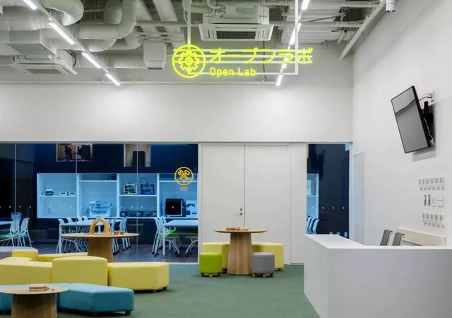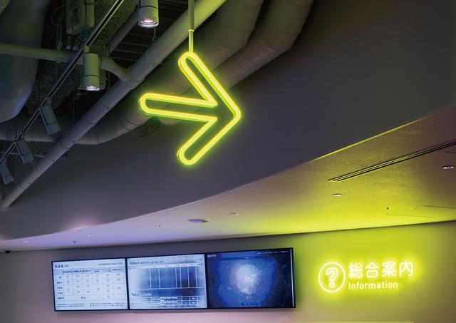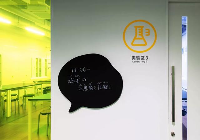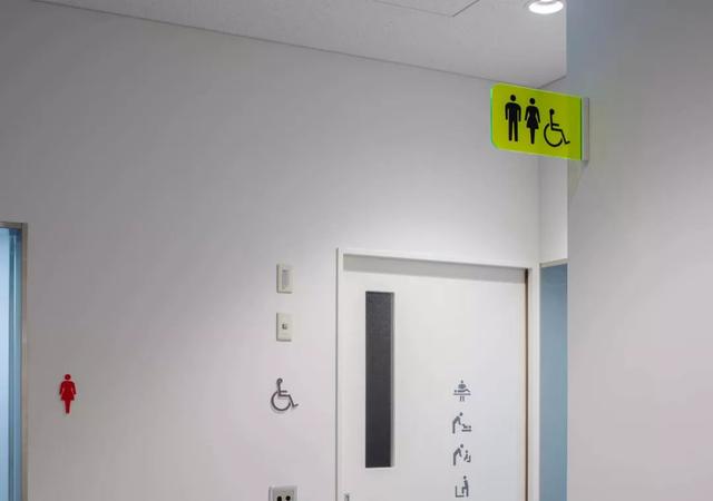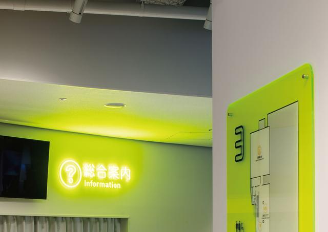 利用標(biāo)識(shí)引導(dǎo),對(duì)于不會(huì)日語(yǔ)的訪客也很友好。玻璃也使用了熒光黃色。