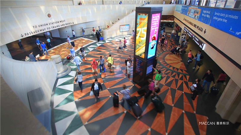 現(xiàn)代社會,標識標牌早已滲透進我們?nèi)粘I钪械拿恳粋€角落:從每日必經(jīng)的馬路上的指示牌,到各種公共場合里導視標識。數(shù)字技術(shù)的發(fā)展為標識導視系統(tǒng)帶來了更多的可能性,使標識導視系統(tǒng)逐漸從傳統(tǒng)的靜態(tài)通信形式發(fā)展到動態(tài)演示的數(shù)字標志系統(tǒng)形式。導向系統(tǒng)不再局限于信息傳播的硬件設施,而是更多地體現(xiàn)為一個信息系統(tǒng)項目,其主要特點是交互性、用戶識別、用戶體驗、信息集成等。