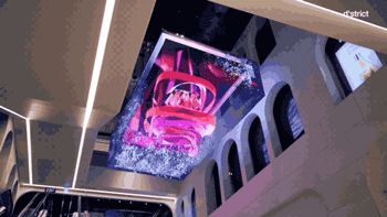 在商場(chǎng)的另一邊還有個(gè)貫穿了三層樓的大屏幕。