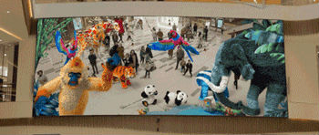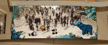 這塊LED大屏就不僅僅是展示視覺(jué)畫(huà)面這么簡(jiǎn)單了,你還能跟屏幕里的動(dòng)畫(huà)實(shí)時(shí)互動(dòng)。