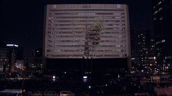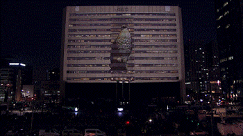 更瘋狂的是,他們還把韓國(guó)總統(tǒng)投影在他們的作品里,刷新了全世界電視臺(tái)的歷史。