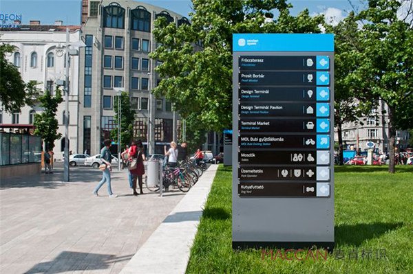 二級(jí)導(dǎo)向標(biāo)識(shí)的最大特點(diǎn)是其承擔(dān)著整個(gè)區(qū)域內(nèi)主要的導(dǎo)視服務(wù)功能,在整個(gè)系統(tǒng)里起著承上啟下的作用,決定著整個(gè)標(biāo)識(shí)導(dǎo)向系統(tǒng)的功能是否完整和健全。