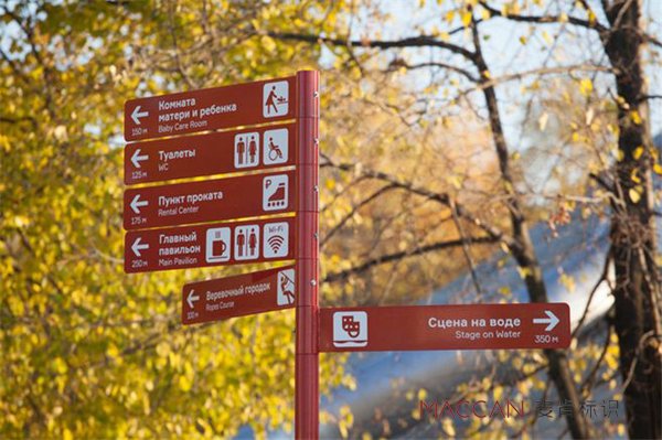 二級(jí)導(dǎo)向標(biāo)識(shí)指的是承接一級(jí)標(biāo)識(shí),繼續(xù)為人們提供更加詳細(xì)具體的信息的標(biāo)識(shí)。例如在景區(qū)之內(nèi),游客可以通過一級(jí)標(biāo)識(shí)的指示順利到達(dá)景區(qū)環(huán)境之中,而在到達(dá)景區(qū)目的地后,二級(jí)導(dǎo)視標(biāo)識(shí)將為游客提供更加全面和詳細(xì)的環(huán)境信息,游客可以根據(jù)二級(jí)導(dǎo)視標(biāo)識(shí)規(guī)劃在景區(qū)內(nèi)的旅游線路,熟悉景區(qū)內(nèi)景觀位置,在區(qū)域內(nèi)道路交叉處的多功能導(dǎo)視牌、區(qū)域平面布局圖都都可以納入這一級(jí)的導(dǎo)視牌之中。