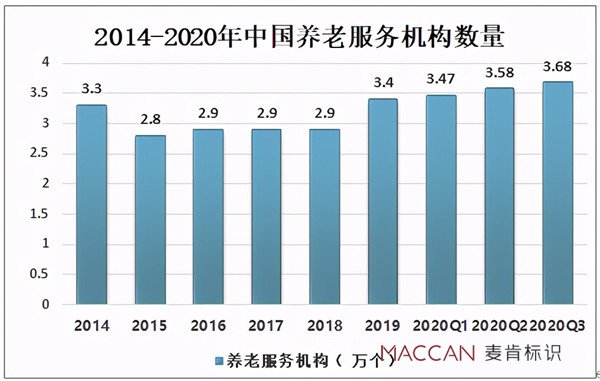 2019年中國養(yǎng)老服務機構數(shù)量為3.4萬個,2020年一季度養(yǎng)老服務機構數(shù)量為3.47萬個,2020年二季度養(yǎng)老服務機構數(shù)量為3.58萬個,2020年三季度養(yǎng)老服務機構數(shù)量為3.68萬個。
