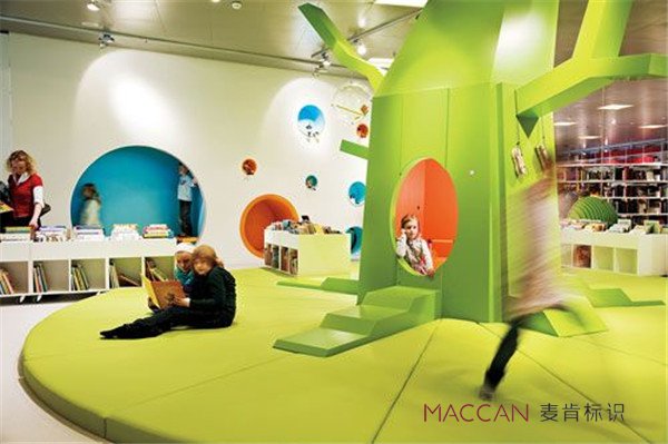 兒童區(qū)的標識導視設計以童趣、安全、環(huán)保為主。