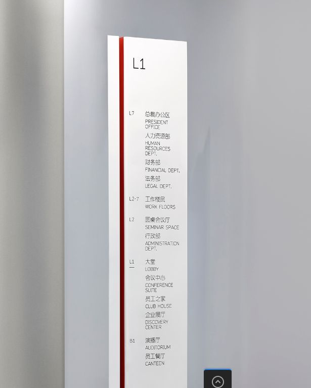 大廈標(biāo)識的建立及完善能夠讓初來乍到人了解到整個大廈的結(jié)構(gòu)布置,知道他們當(dāng)時在整個大廈的位置,并且知道目標(biāo)位置在哪兒,從而使得消費(fèi)者能夠在大廈中輕松的知道自己所要到達(dá)的地點(diǎn)。